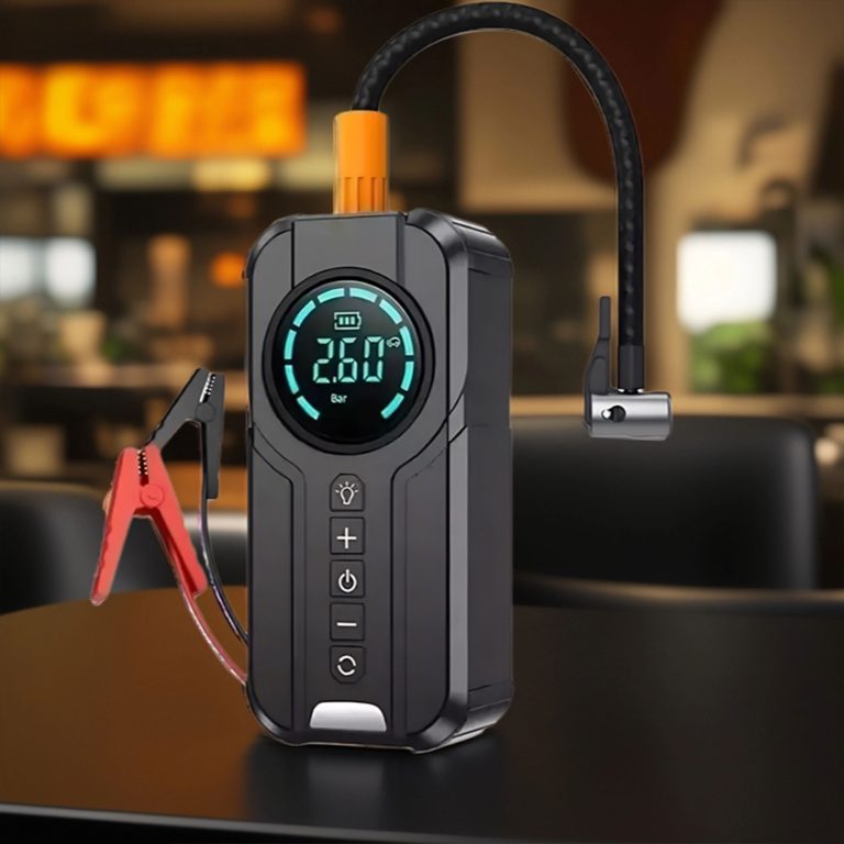 عدة سيارة متنقلة للطوارئ بضمان عام (بنك طاقة+كشاف)
