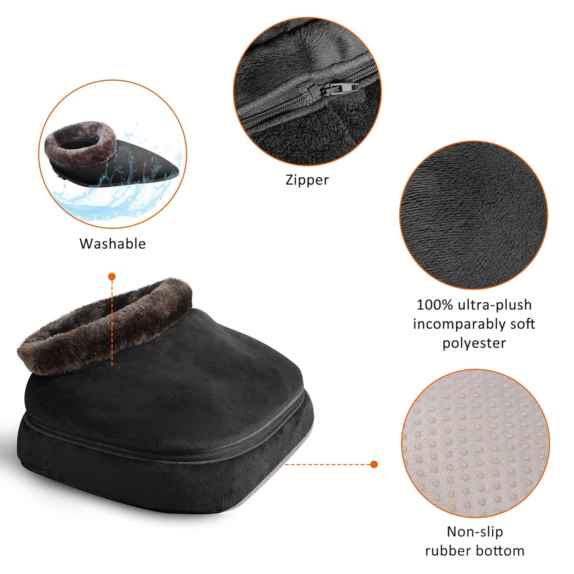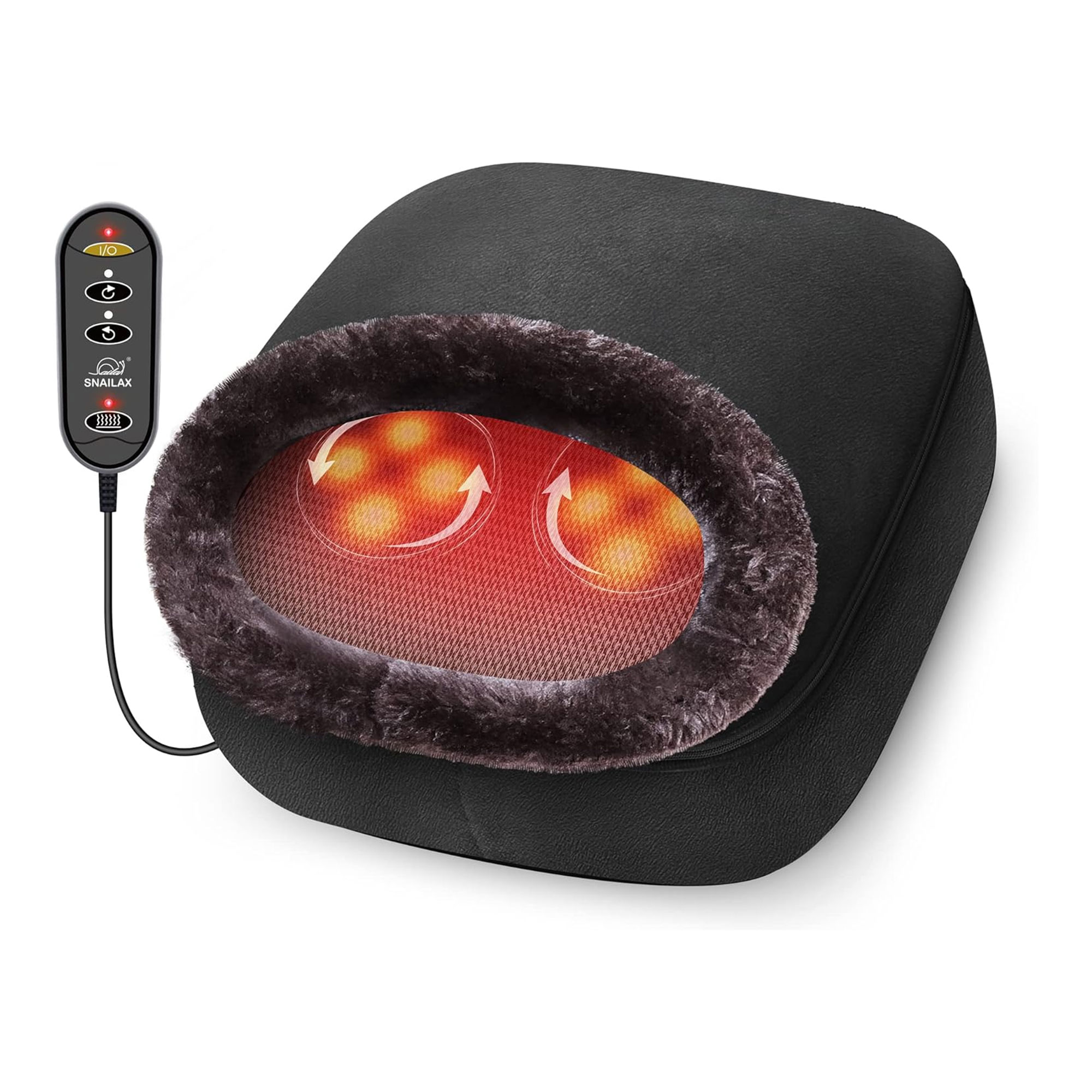 جهاز تدليك القدمين الكهربائي المخملي المزود بخاصية التسخين وبكرة تدليك اهتزازية – ضمان عام