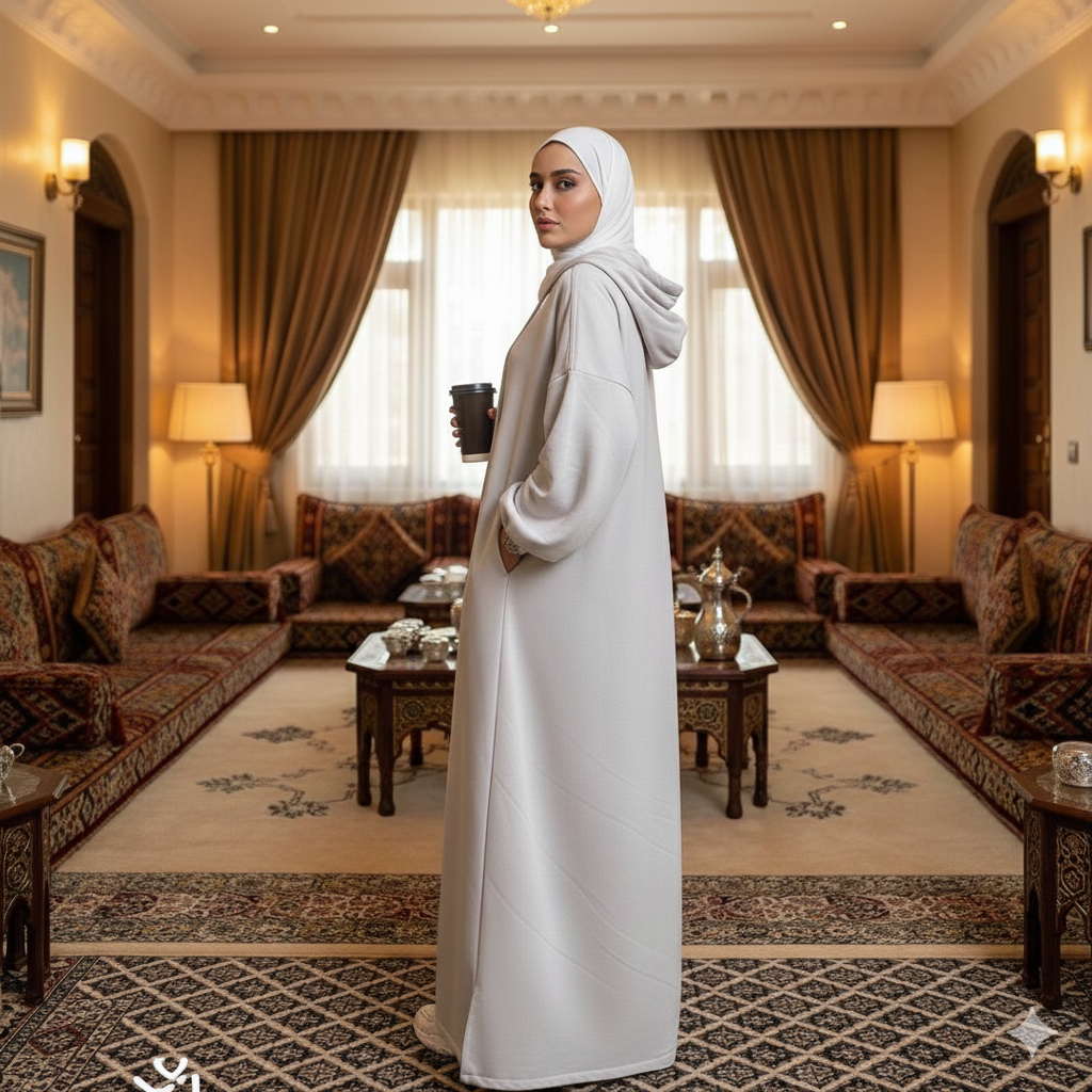 زاوية الأناقة: تصميم عصري يجمع بين الهودي والعباية