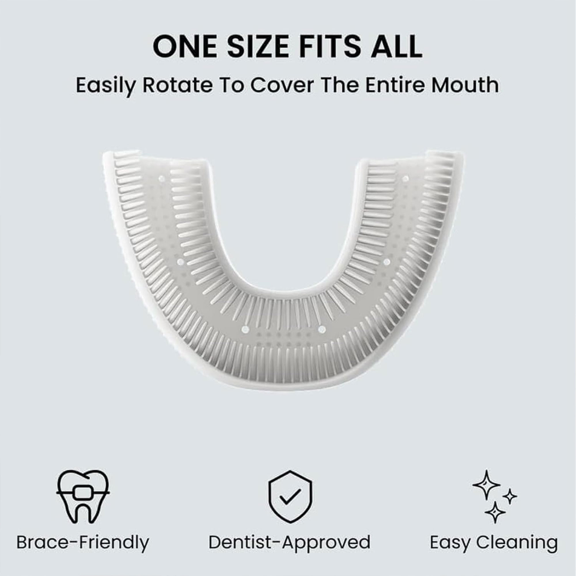 تصميم U يغطي الفم كامل وينظف بزاوية 360.