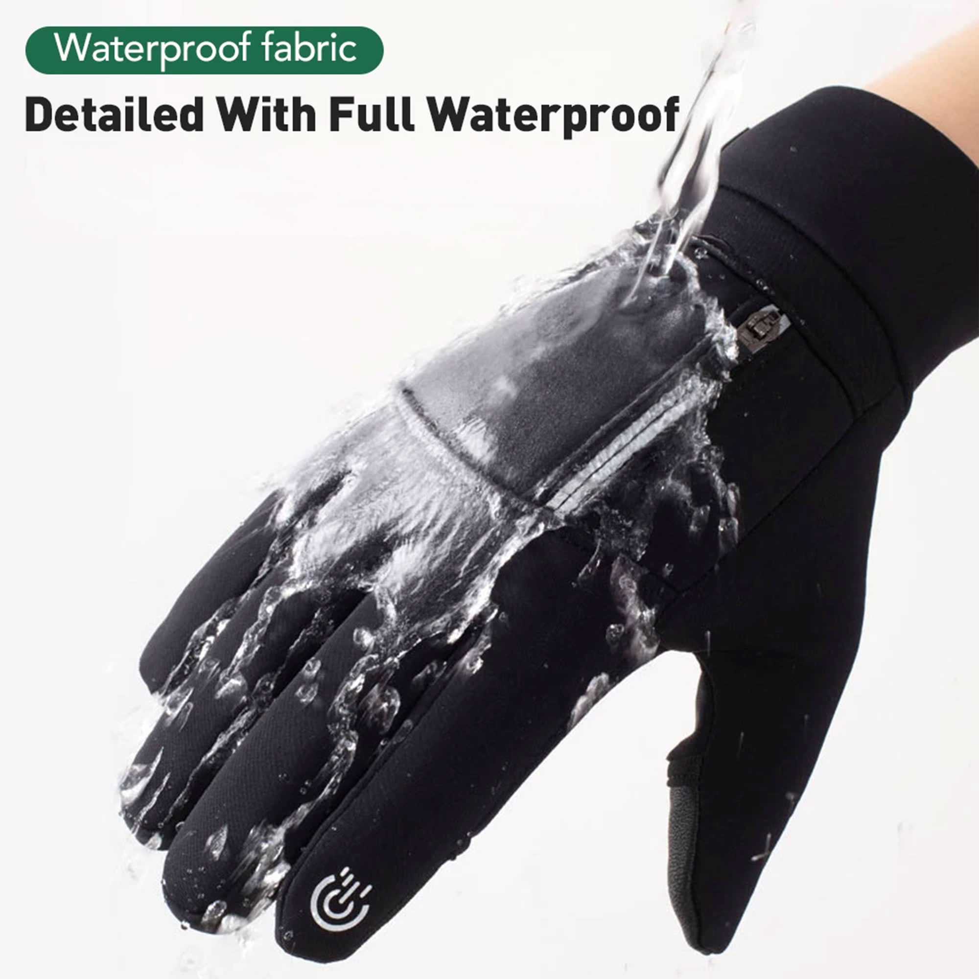قفازات شتوية مقاومة للماء مزودة بجيوب بسحاب – لارج