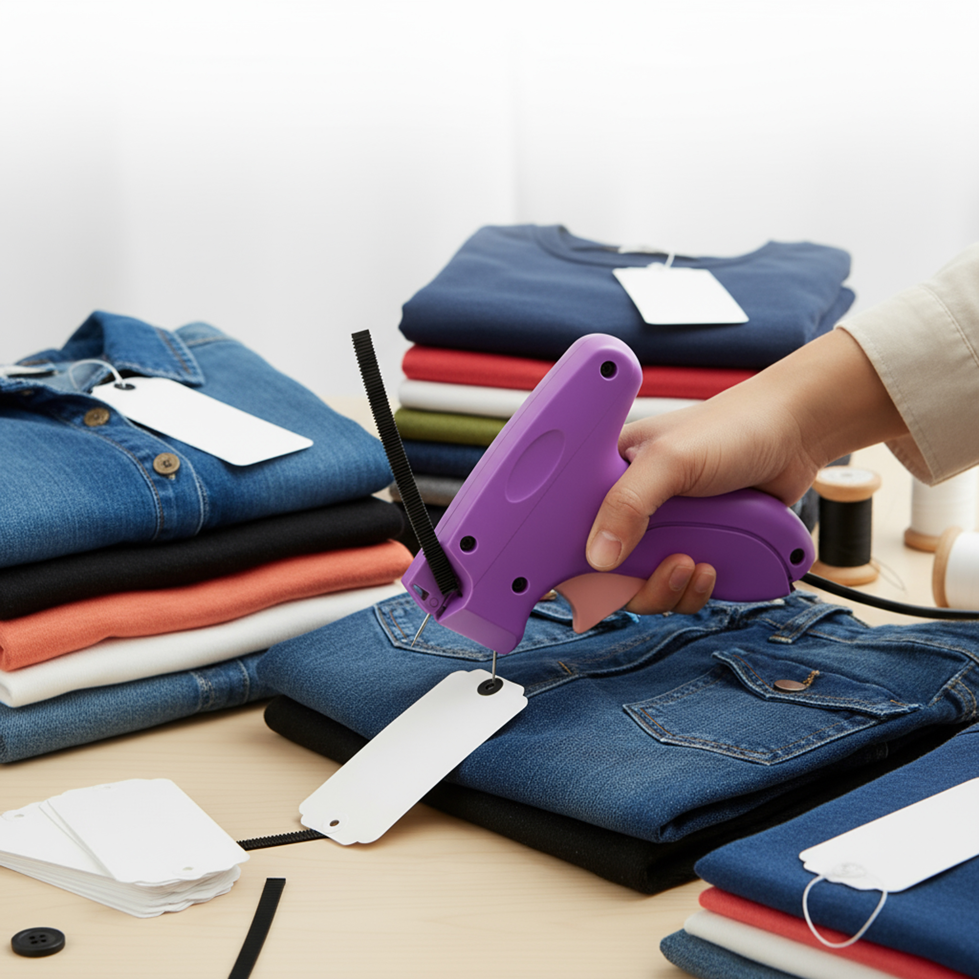 يثبت بطاقات الأسعار على الملابس بسهولة وسرعة